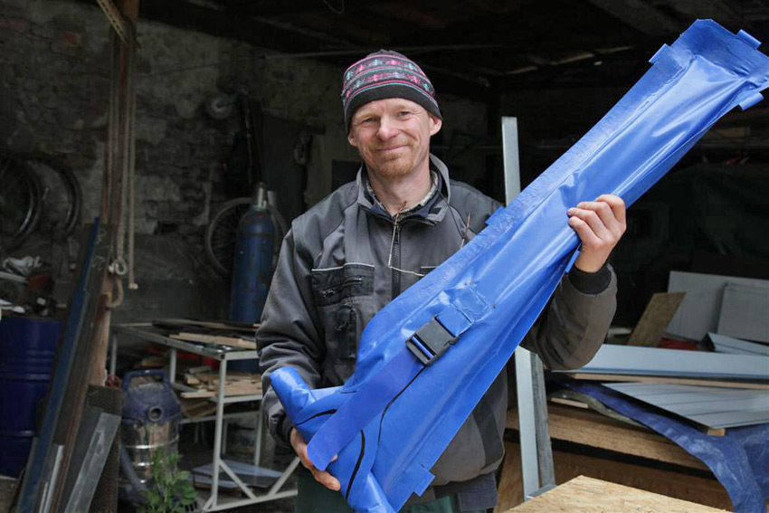 Uli schweißt (PVC-Schweißen) mir die wasserdichte Gewehrhülle und Carsten verlötet die elektrische Anlage und versiegelt sie.