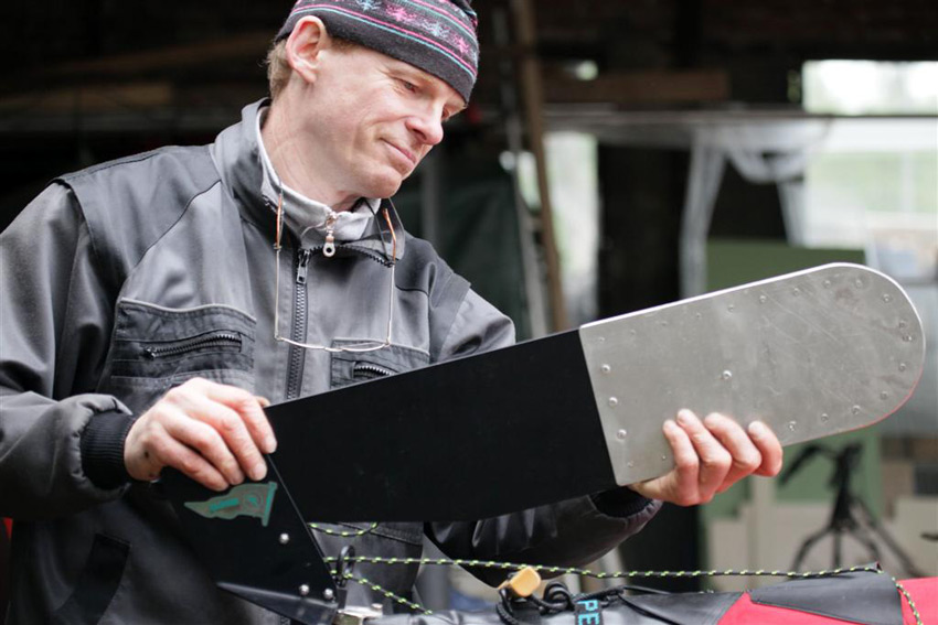 Enja Outdoortechnik einen speziellen Zeltofen zur Verfügung gestellt. Seine Öfen sind genial konstruiert, klein und platzsparend. Mit dem Ofen soll bei längeren Stopps ein größeres Zelt beheizt, aber auch immer wieder gekocht werden. Dadurch möchte ich Kochertreibstoff sparen. An der Küste Spitzbergens werden durch den sibirischen Strom immer wieder Bäume angeschwemmt. Oft sind es riesige Baumstämme, die man nur mit einer recht großen Säge zerlegen kann. Zu diesem Zweck hat Uli extra eine zusammenlegbare Bügelsäge gebaut. Auch weitere Spezialkonstruktionen für diese Reise kommen von ihm.