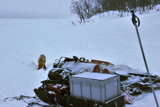 Einmal war kurz ein wenig Polarlicht zu sehen, und einen kleinen Schneesturm gab es auch. Aufgrund des starken Windes mussten wir abends eine Schneehöhle graben, um darin zu übernachten. In einer anderen Nacht hat ein Rotfuchs nicht nur einen Teil des Hundefutters, sondern auch einen Großteil von Ulis Vorräten geklaut.
