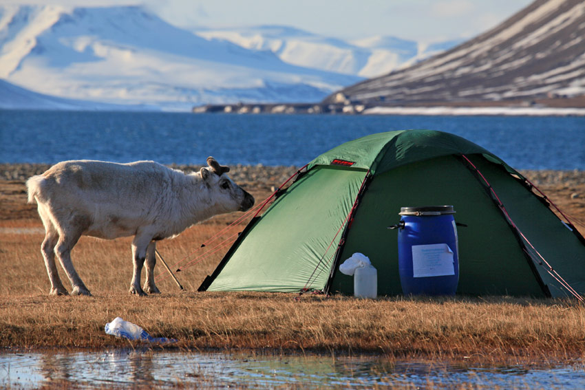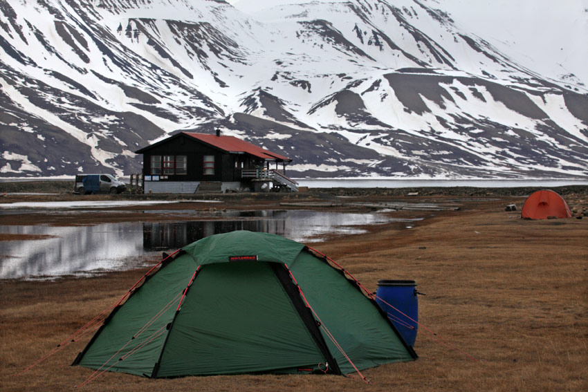 Mein Zelt, das ich auf dieser Reise benutzen werde, ist ein Hilleberg Staika. Dieses Zelt ist extrem windbeständig, bei starken Winden allein aufbaubar und benötigt nicht unbedingt Heringe oder andere Bodenbefestigungen. Das ist auf Spitzbergen von Vorteil, denn es kann teilweise schwierig werden, Halterungen in den steinigen, harten Untergrund zu bekommen.
