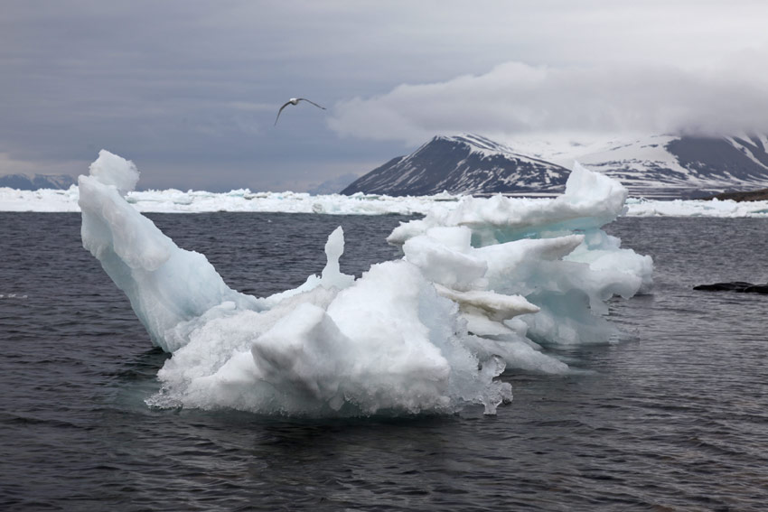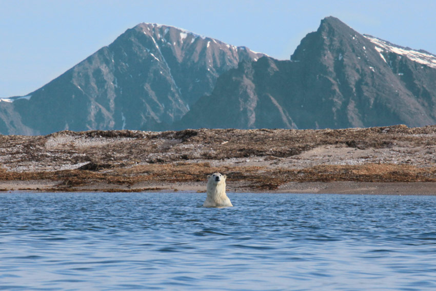Vorige Tage wurde ein Eisbär auf einer der Eisschollen in den Adventfjord getrieben. Vollkommen unspektakulär lag er auf seiner Scholle und hat geschlafen...