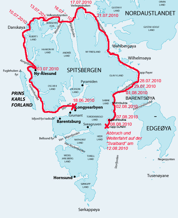Trotzdem laufen die Planungen und Vorbereitungen für die Reise natürlich weiter. Literatur über die Arktis und speziell über Spitzbergen wird weiterhin verschlungen. Auch mit dem zuständigen Beamten auf Spitzbergen, Herrn Stein Tore Pedersen, habe ich inzwischen Kontakt aufgenommen und unsere Reise angemeldet.
