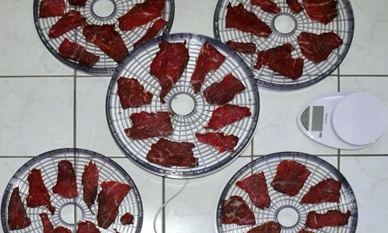Tagelang habe ich Fleisch getrocknet, das auf der Reise als Snack oder für Mahlzeiten verwendet werden wird.