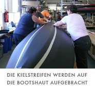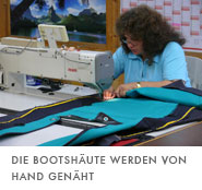 Mit Gerhard Schedel spreche ich die Möglichkeiten durch, wie das Boot für diese Reise ausgestattet werden sollte. Eva Speth, die Spezialistin für besonders kniffelige Näharbeiten, nimmt sich meiner als erstes an. Wir besprechen die Bootshaut sowie die Taschen und Halterungen für die Ausrüstung. Immer wieder neue Ideen zaubert sie auf den Tisch, bringt am kommenden Tag noch private Fotos von Militärfaltbooten mit, die hier vor einiger Zeit für die französische Armee entworfen und genäht wurden. Einige dieser Spezialhalterungen werden auch auf meiner Bootshaut angebracht. Am dritten Tag ist alles besprochen. Halterungen für Eispickel, Gewehr, Axt und Solarzellen werden speziell in die Bootshaut eingenäht. Dazu kommen noch verschiedenste andere Ösen und Halterungen, damit bei Bedarf nichts fehlt. An der Außenhaut kommen in Höhe der Wasserlinie und am Unterschiff doppelte Lagen Hypalon, um ein Durchscheuern der Bootshaut an scharfkantigem Eis oder an Steinen beim Anlanden zu vermeiden. Auch das Gerüst wird leicht verändert.
