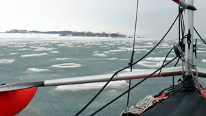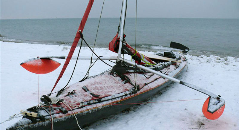 Im Februar 2008 habe ich mit einem Faltboot eine Tour auf dem Ijsselmeer unternommen. Die Temperaturen von 4-8 Grad waren kein besonderes Problem. Beim Segeln ist mir leider wegen zu starken Windes der Holzmast gebrochen. Da ich aber bei der Spitzbergen-Tour sowieso einen Aluminiummast verwenden wollte, war das nicht so schlimm.