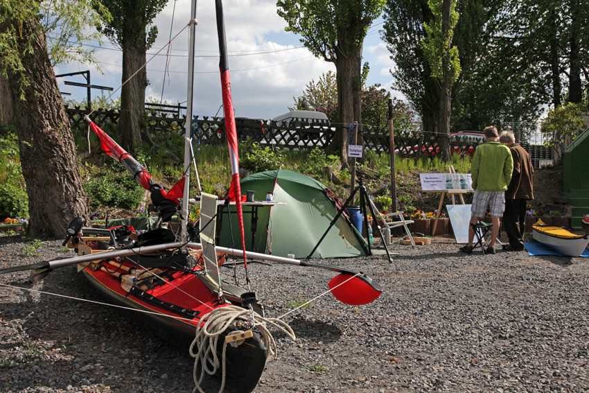 Am 30.April sowie den 1. und 2. Mai, hatte ich mein Lager bei den Zölzer Paddlertagen aufgeschlagen. Freitags war die NRZ da, um einen kleinen Bericht über die Reise zu schreiben. Fürs Wochenende wurde Regen vorausgesagt, doch wir hatten Glück - Samstags herrlichstes Wetter und am Sonntag wechselndes Wetter mit vereinzelten Schauern und immer wieder Sonnenschein. Einige 100 Besucher waren da, haben sich mit den Testbooten auf dem Wasser vergnügt, aber auch mein Lager besichtigt und die Ausrüstung angesehen.